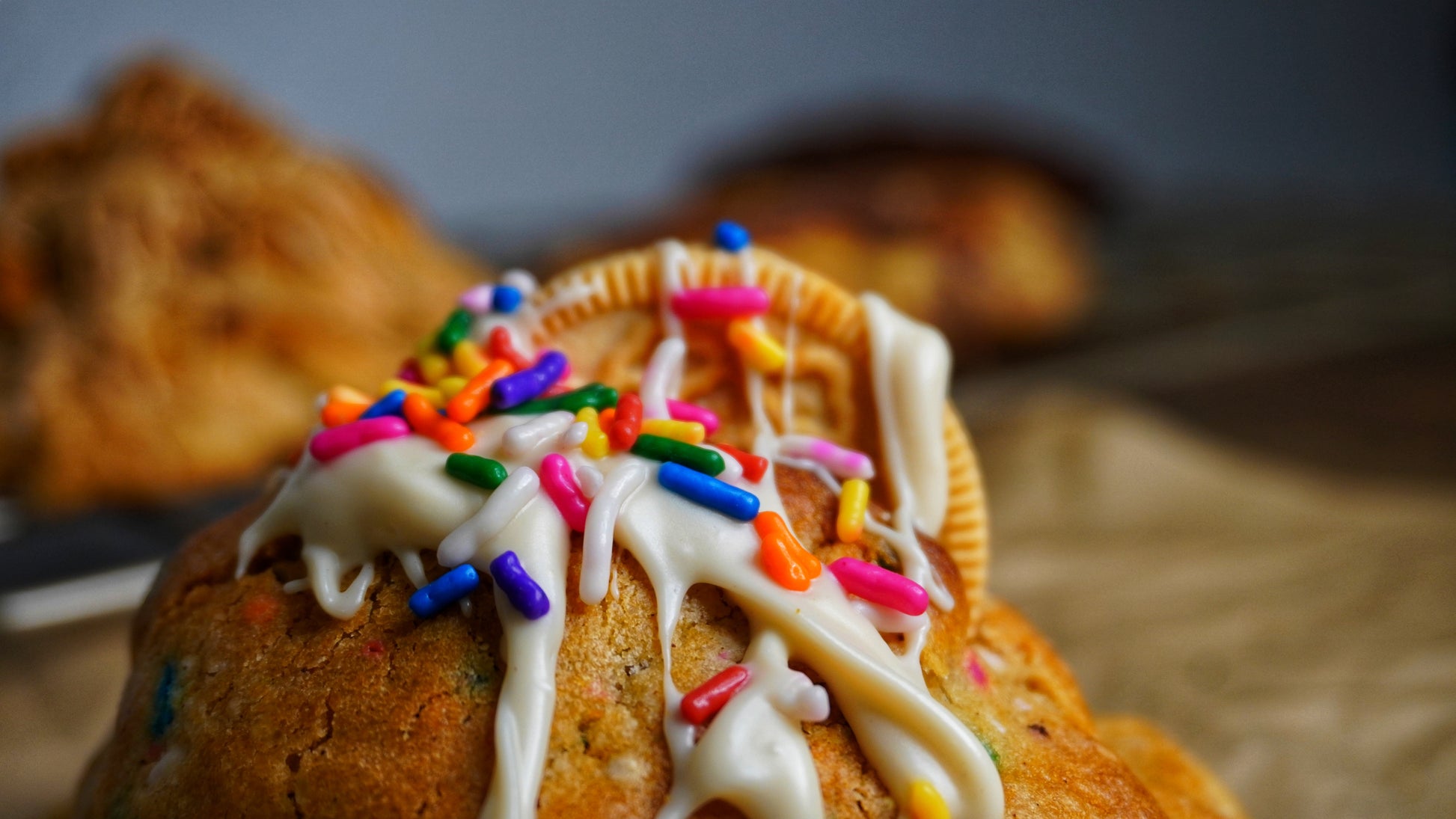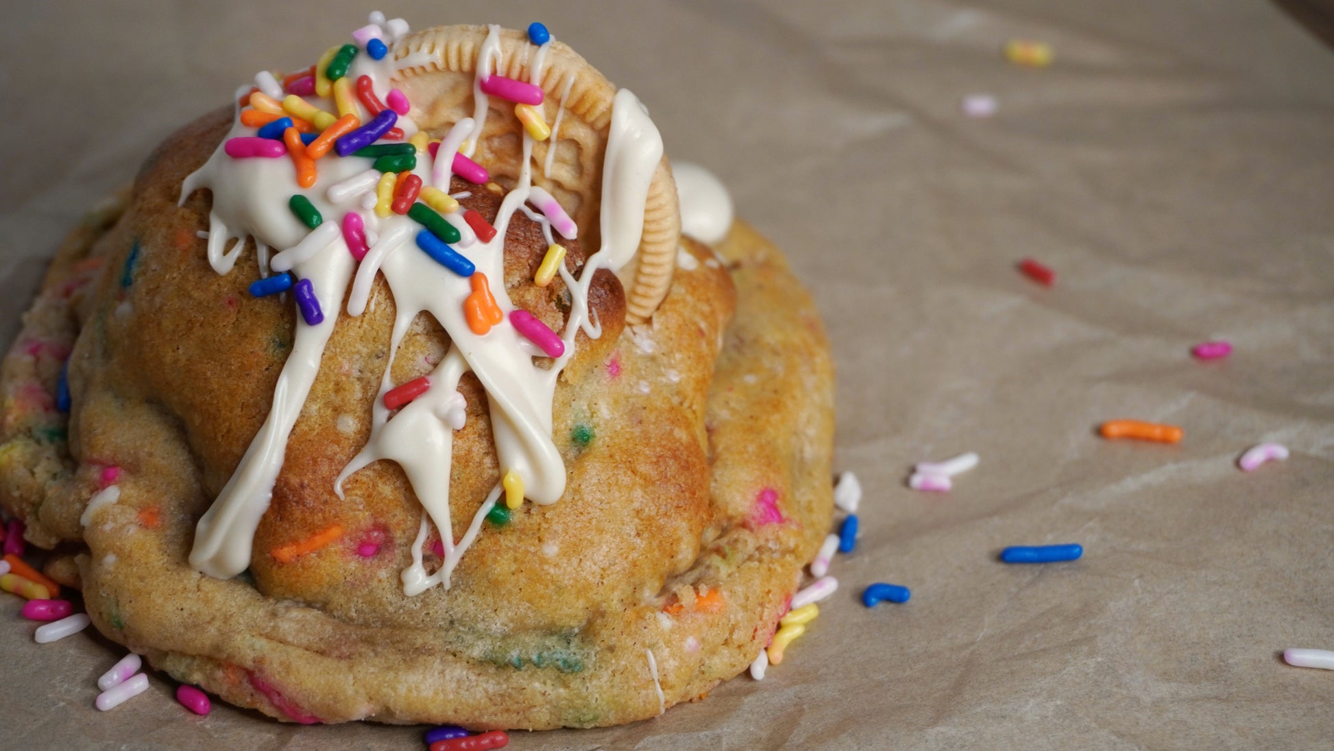 Wheat flour, cane sugar, white chocolate, vanilla cookies, sprinkles, butter, eggs, chemical yeast, vanilla and salt