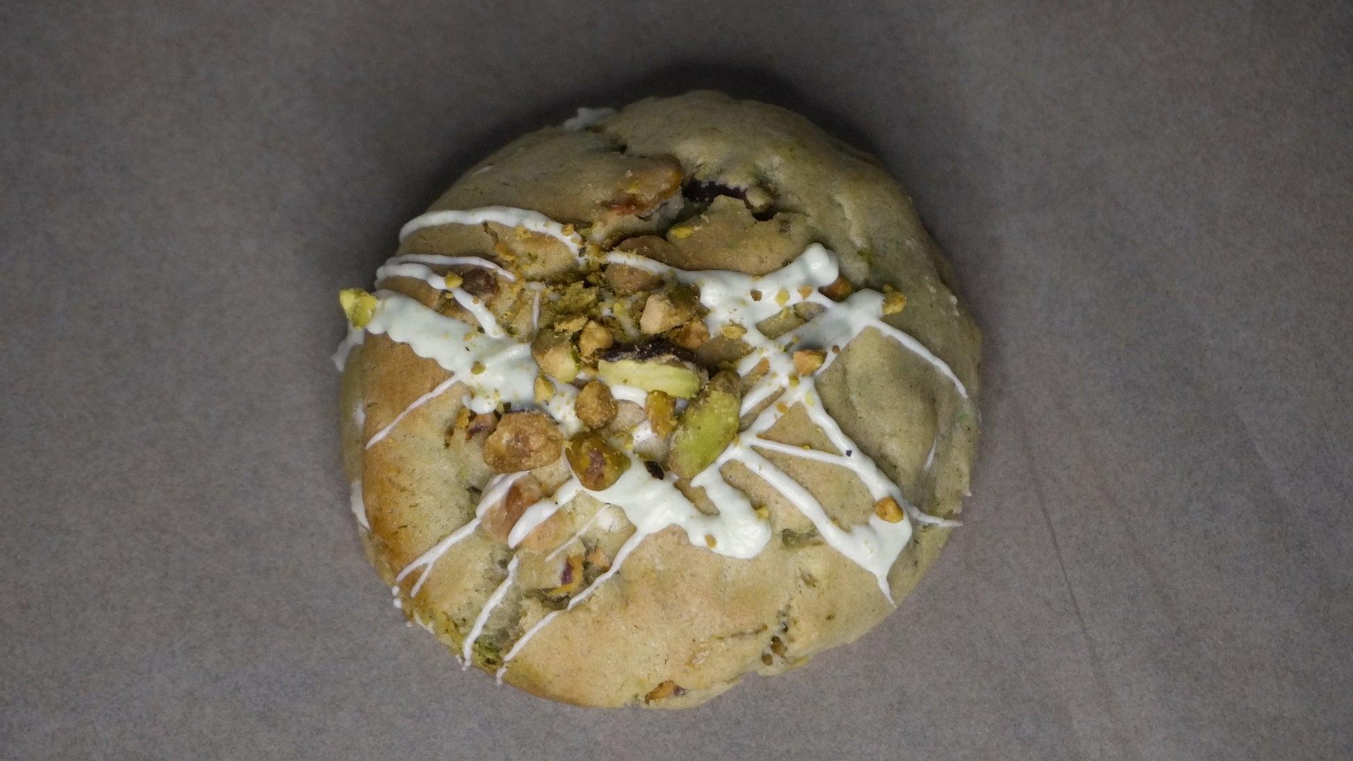 Its soft, golden dough is loaded with premium pieces of white chocolate, while inside it it holds a creamy pistachio heart that makes it an irresistible experienc